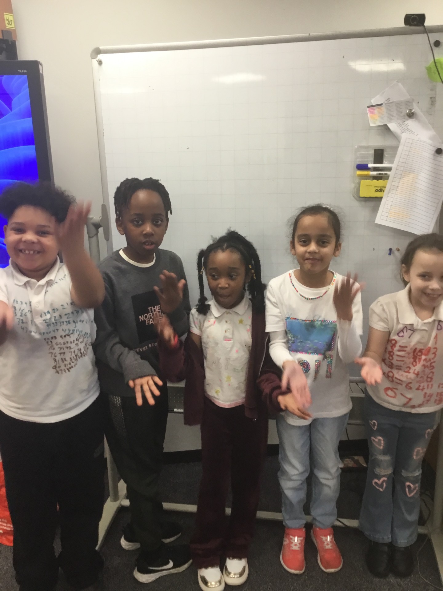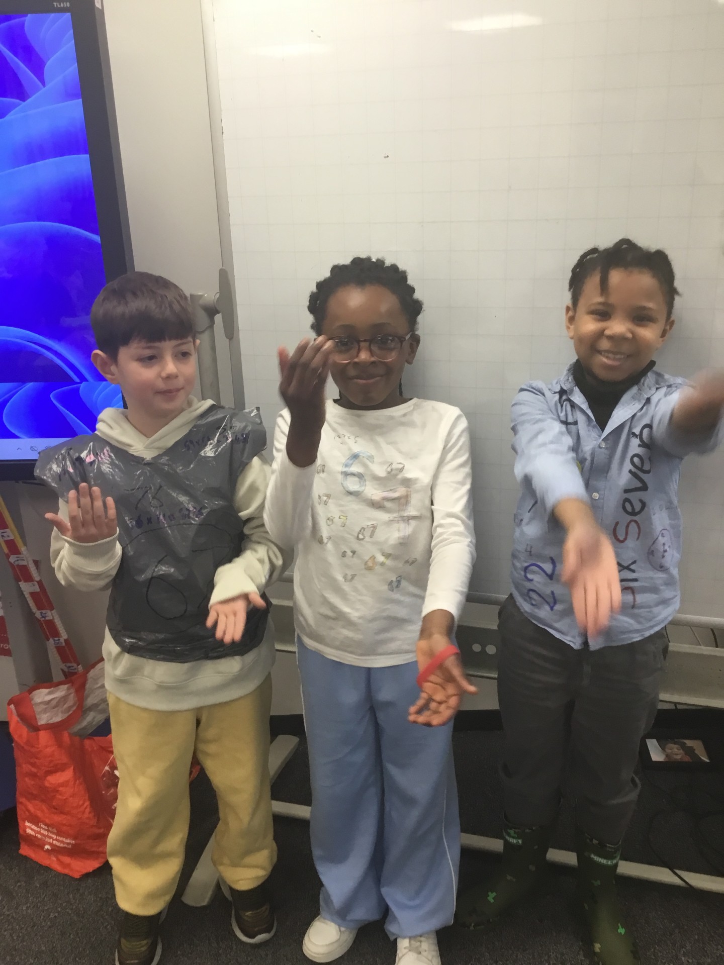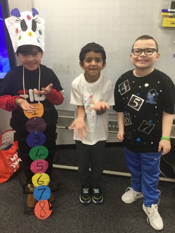 We enjoyed learning and dancing along to some Super Mover maths songs and went on a number hunt around school.