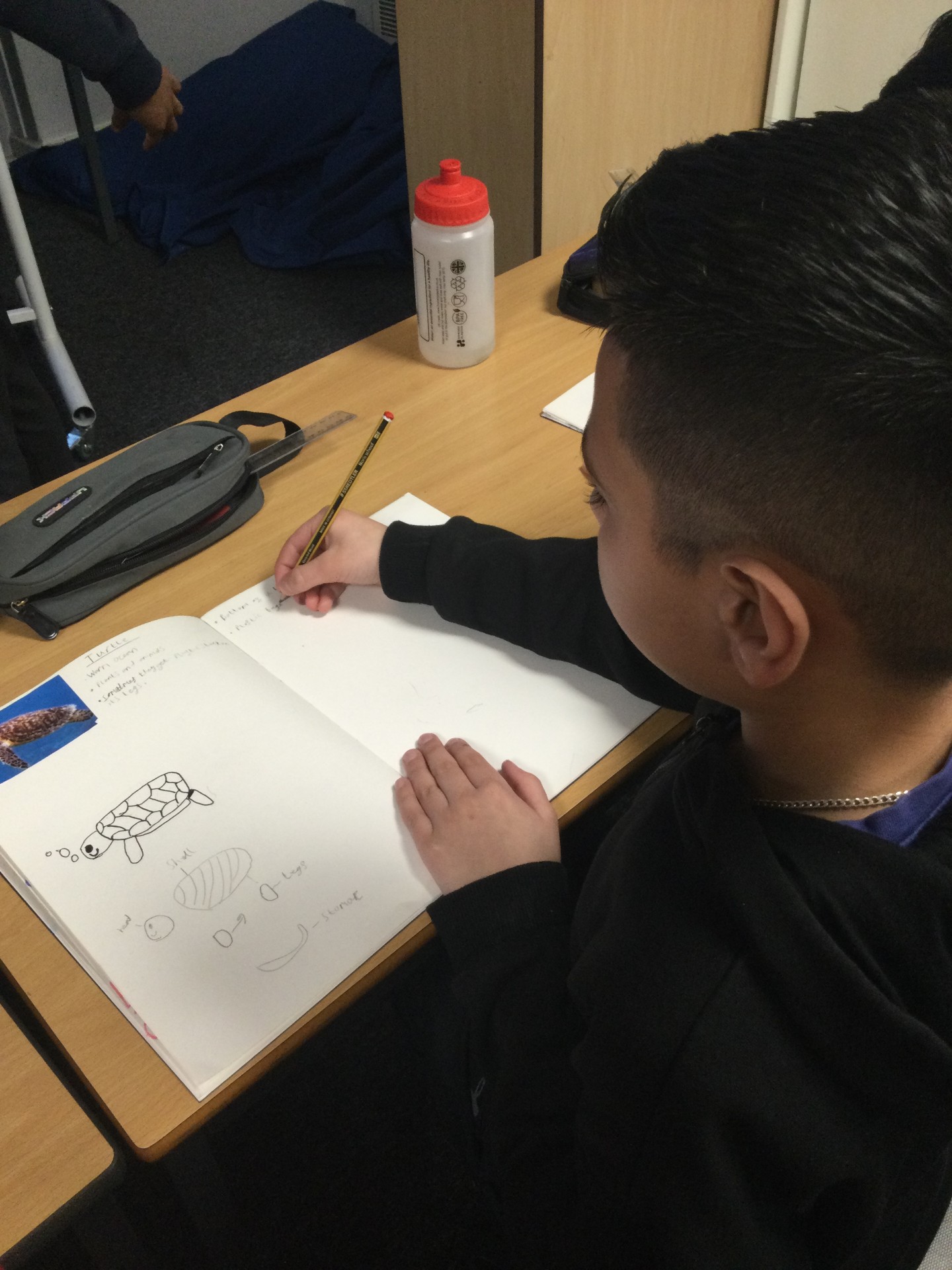Class 14 drew each part of their sea creature to prepare for making their sculpture.