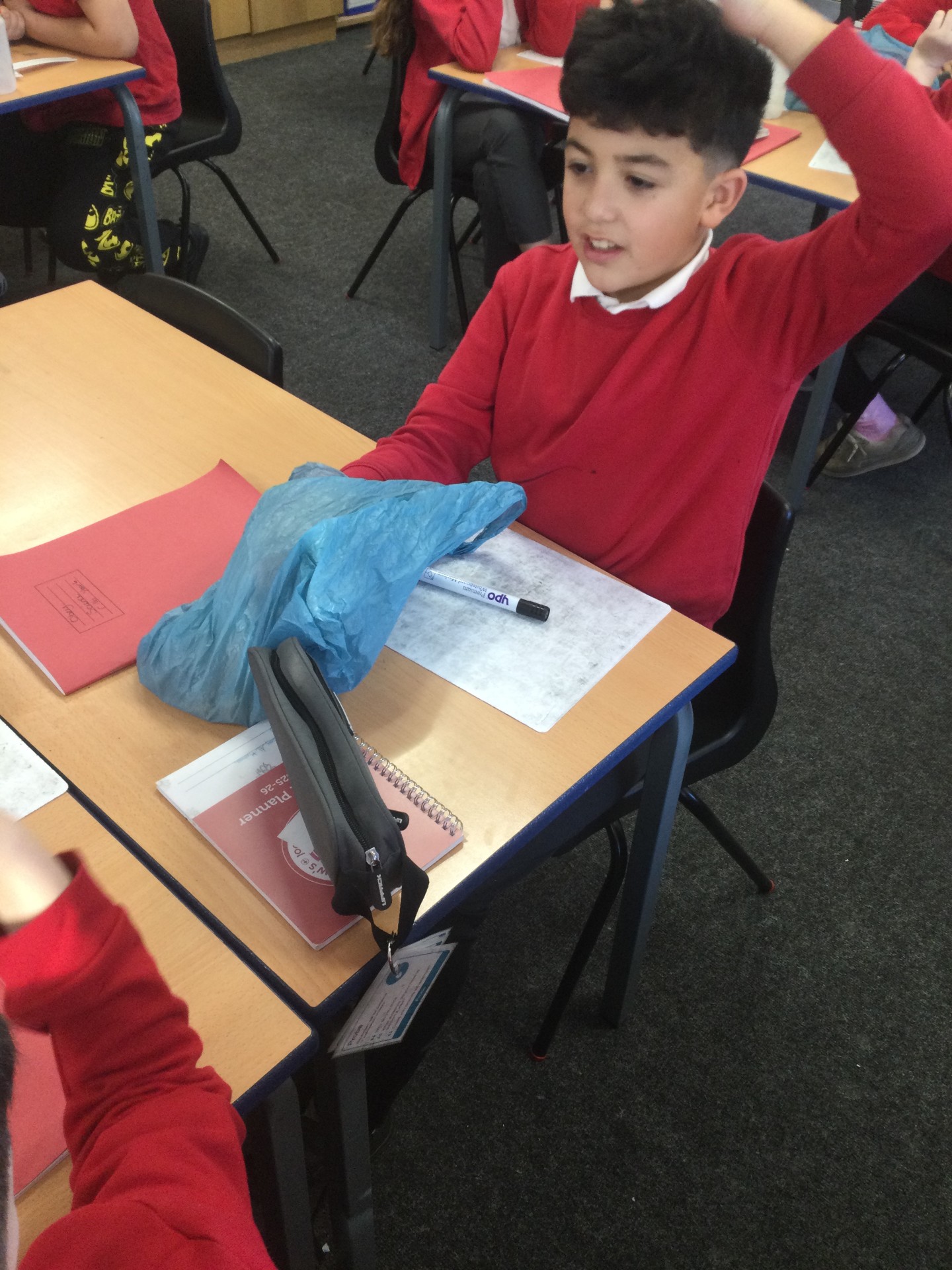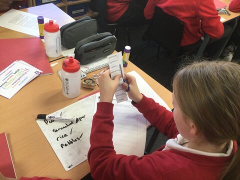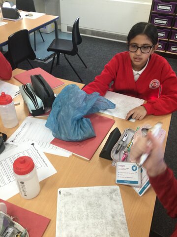 The children first had a go at feeling different items in bags, and they tried to decipher what the items were based on their properties.