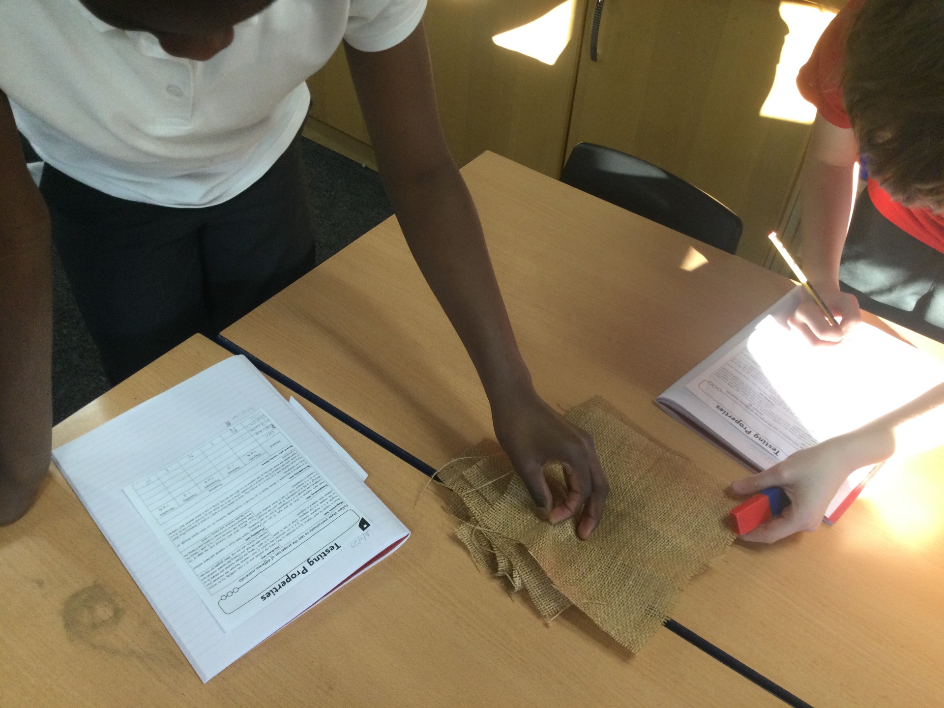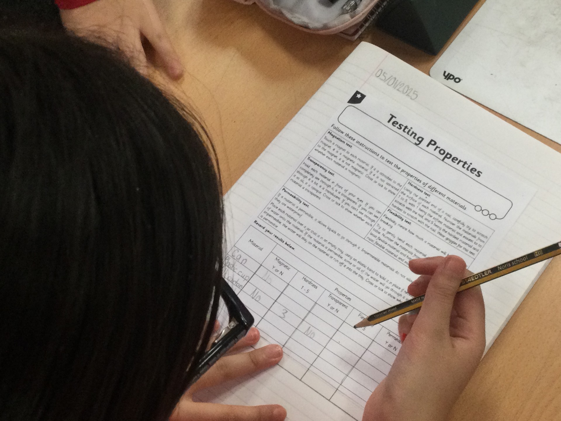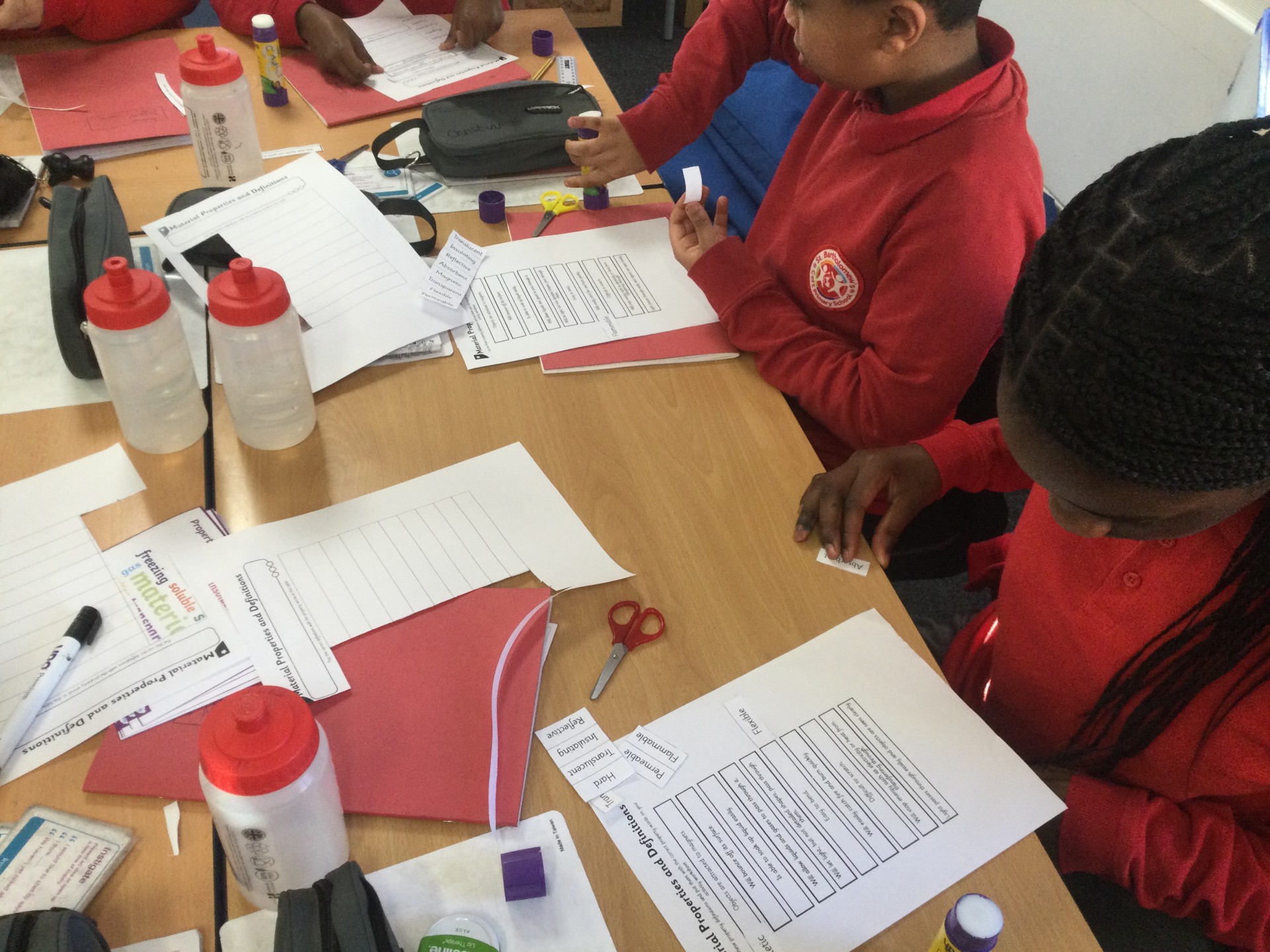 Then, we categorised properties and definitions, and finally the children conducted an experiment, where they tested different materials for hardness, flexibility, transparency, permeability and magnetism.