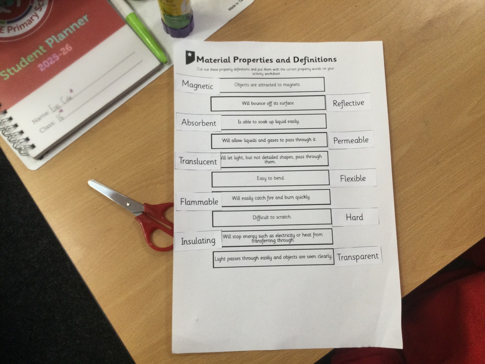 Year 6 (Class 16) - Science - Materials