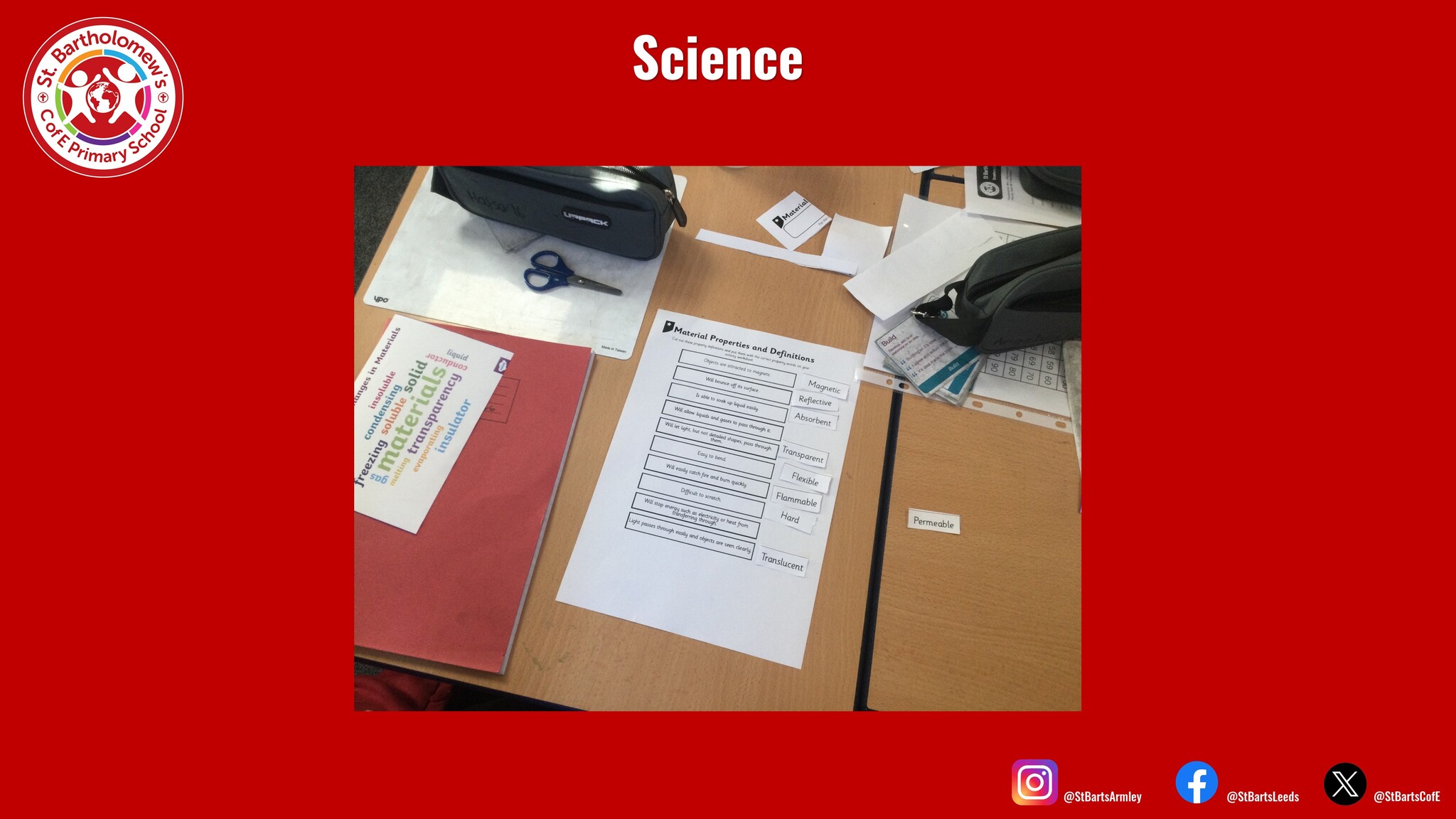 This week, we started our topic about properties of materials. The children first had a go at feeling different items in bags, and they tried to decipher what the items were based on their properties. Then, we categorised properties and definitions, and finally the children conducted an experiment, where they tested different materials for hardness, flexibility, transparency, permeability and magnetism.